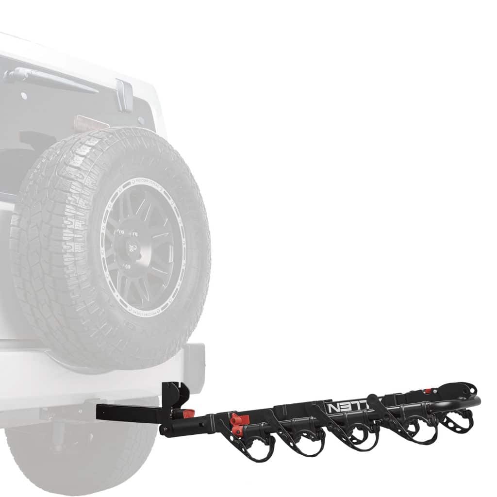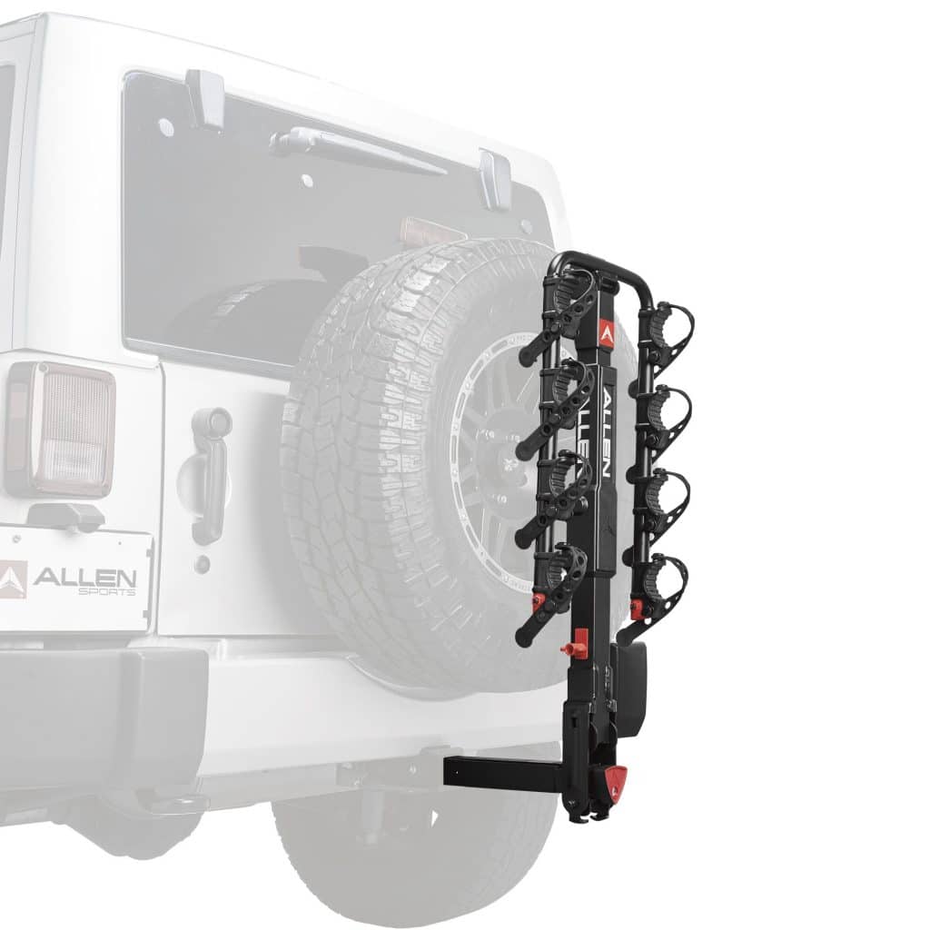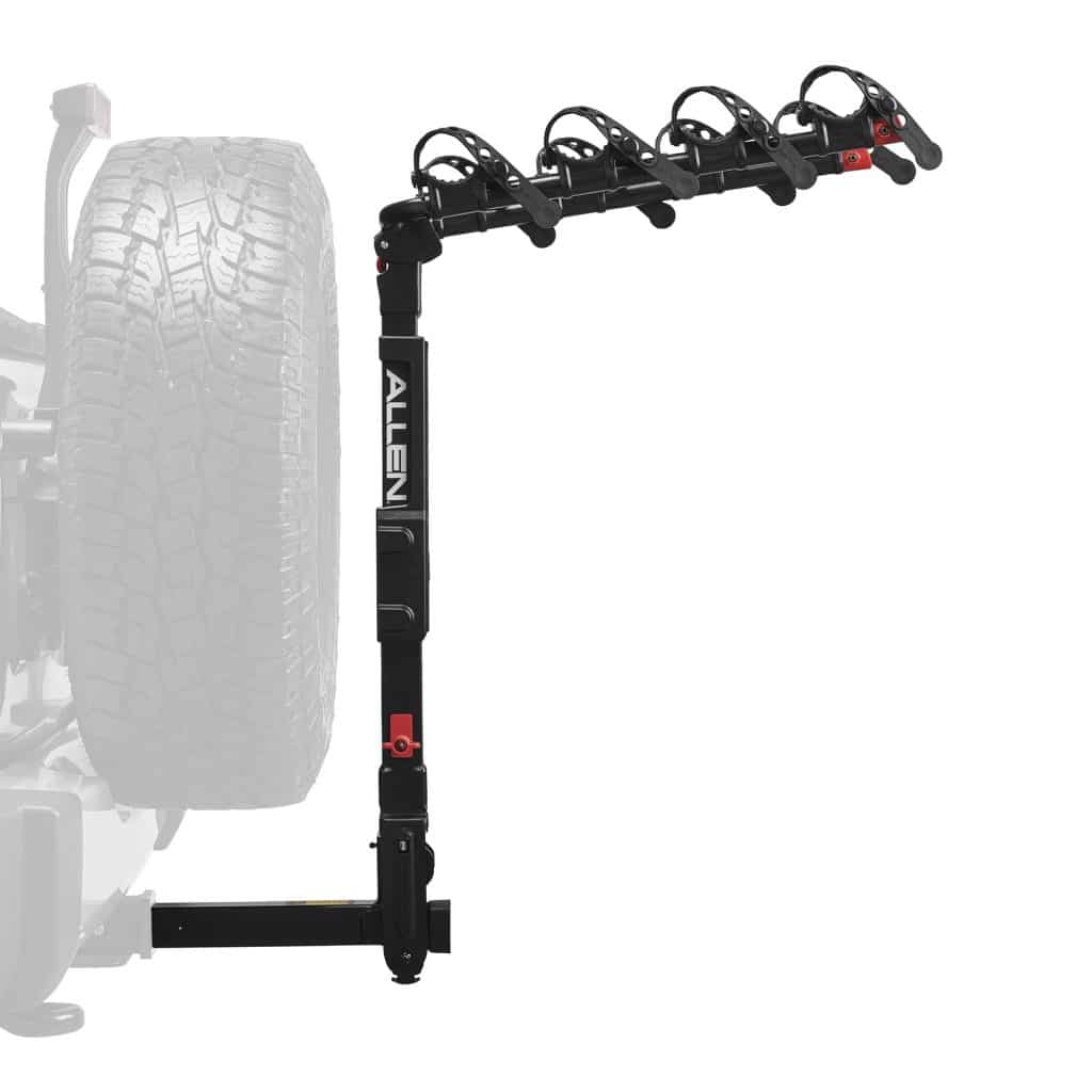 El premier hitch para llanta de repuesto ofrece el paquete definitivo para transportar bicicletas en la parte trasera de su Jeep o SUV con una rueda de repuesto montada en la parte trasera.
